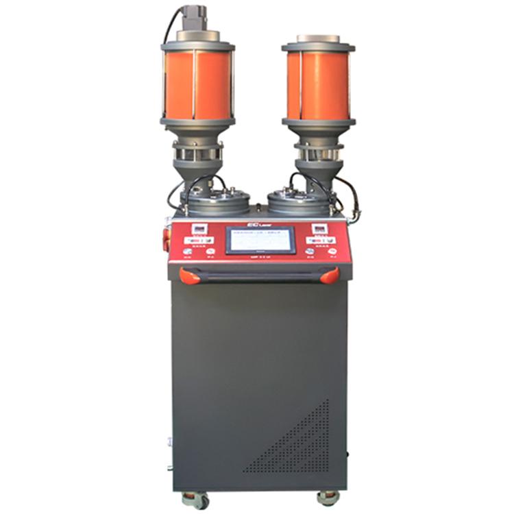 目前市场上的送粉器主要分为两种,一种是重力送粉,可满足短距离送粉,需同步夹持在激光熔覆头上进行粉末输送,适用于机床式激光熔覆设备;另外一种是气动送粉,可满足远距离送粉,灵活性较高,适用于各种工况。而国盛激光选配的送粉器最大输送距离可达20m以上,适用于绝大多数工况。